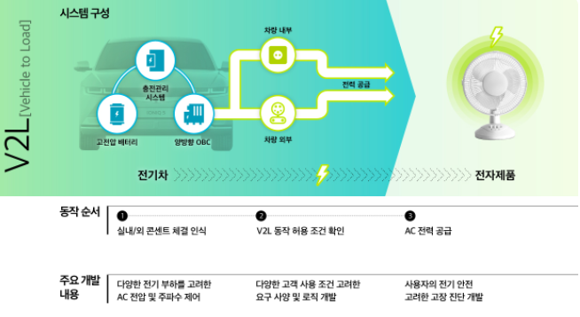 전기차의 V2L 기술, 들어보셨나요? 전기차로 바뀌면서 가장 혁신적이고 많은 사람들이 좋아하는 기능 중에 하나입니다. 바로 전기차를 커다란 전력원으로 사용하는 기술인데요. 실제 최근 유행하는 캠핑족에게는 이제 없어서는 안될 기능 중 하나로 여겨지고 있습니다. V2L 기술의 다양한 장점과 기술적요소를 함께 알아보도록 하겠습니다.