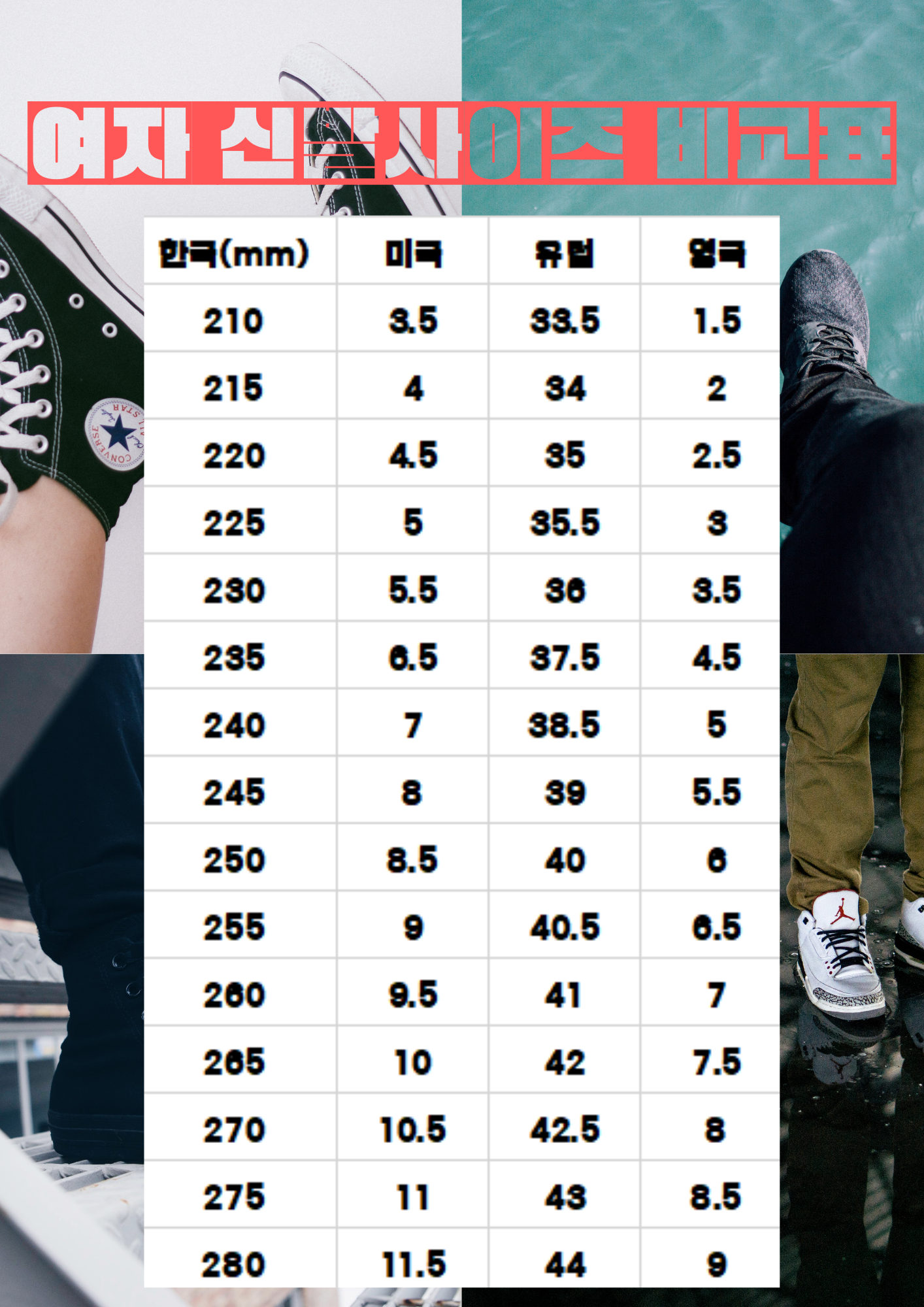 해외 신발 사이즈 비교 이제 좀 감이 오셨나요?