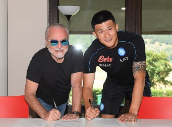 김 선수는 입단하면서 이전에 달았던 3번을 그대로 배정받았다. 나폴리 이적 조건으로는 1805만 유로 약 240억의 이적료에 3+2 년 계약기간 동안 연봉 250만 유료 (33억) 이었다. 이탈리아 리그에서도 정상급으로 알려진 그의 연봉 때문인지 나폴리 선수단 앞에서 김민재 선수는 멋진 댄스를 선보였다는데...