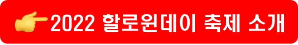 한국에서도 정말 많은 놀이공원, 단체, 카페 등에서 할로윈 축제가 열립니다. 코로나 거리두기가 많이 사라진 2022년 올해 할로윈 데이에는 이런 다양한 행사와 축제를 놓치지 마시기 바랍니다. 오랜만에 가족 혹은 친구들과 할로윈데이를 200% 즐길 수 있는 축제도 소개해 드려요!