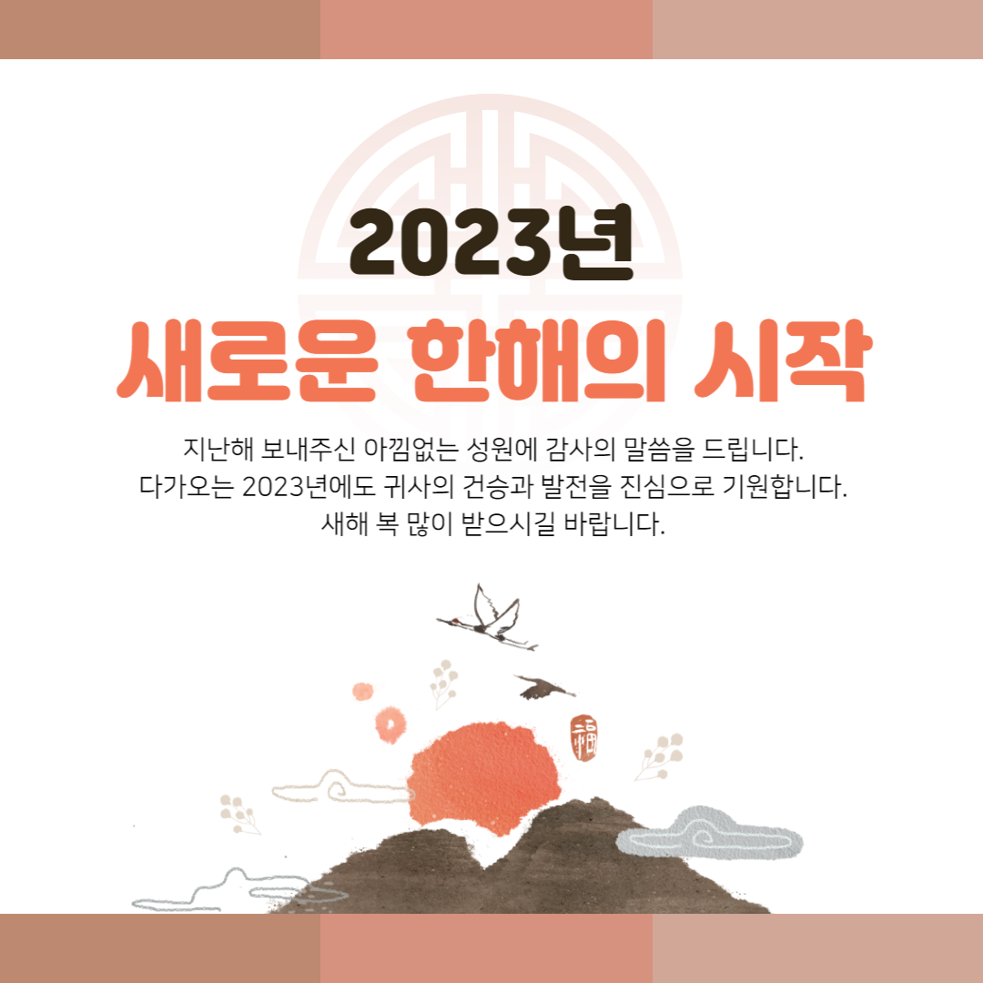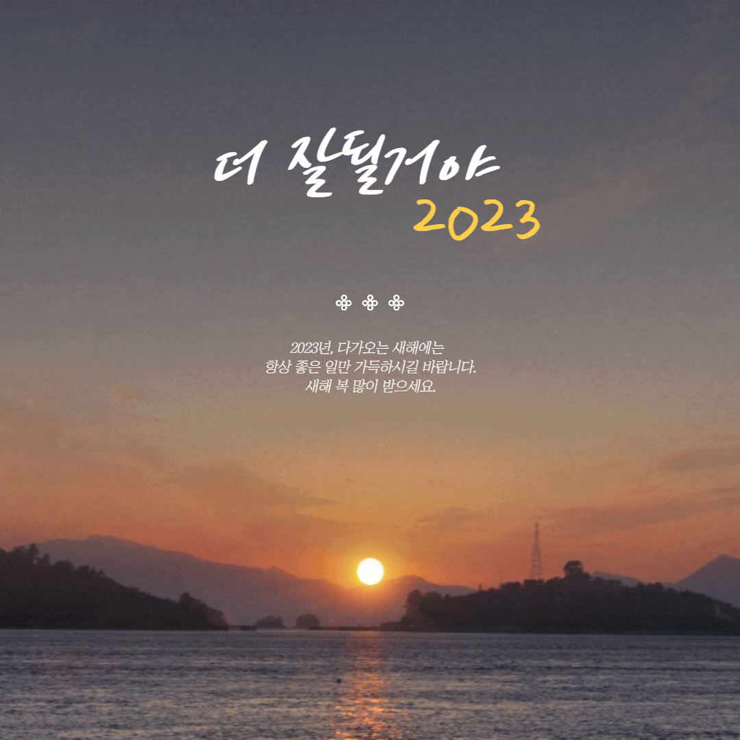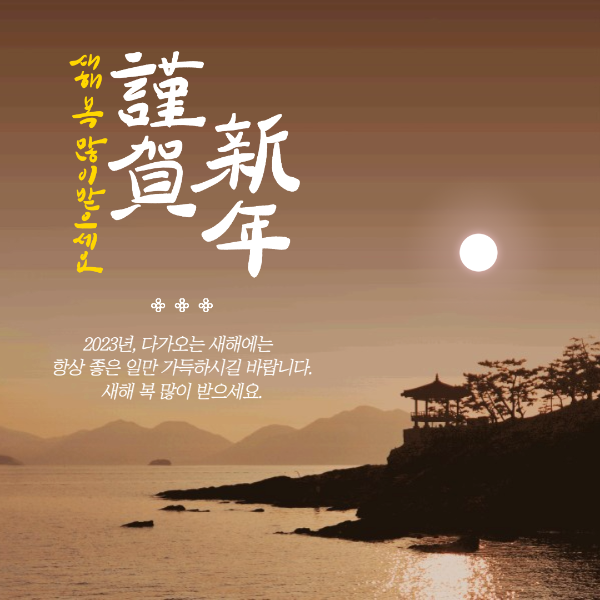 꿈과 희망으로 가득 찬 2023년 새해가 밝았습니다. 항상 메마른 마음에 뿌리 깊은 나무가 되어 주셔서 감사드립니다. 계묘년은 힘찬 새해의 붉은 태양처럼 가슴속 뜨거운 꿈을 향해 도전하시고 그 꿈을 꼭 성취하시길 기원합니다.