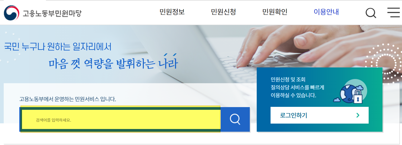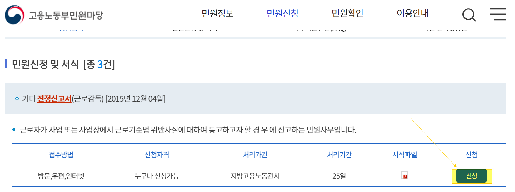 주 52시간 신고는 민원 마당에 접속해 가능합니다.