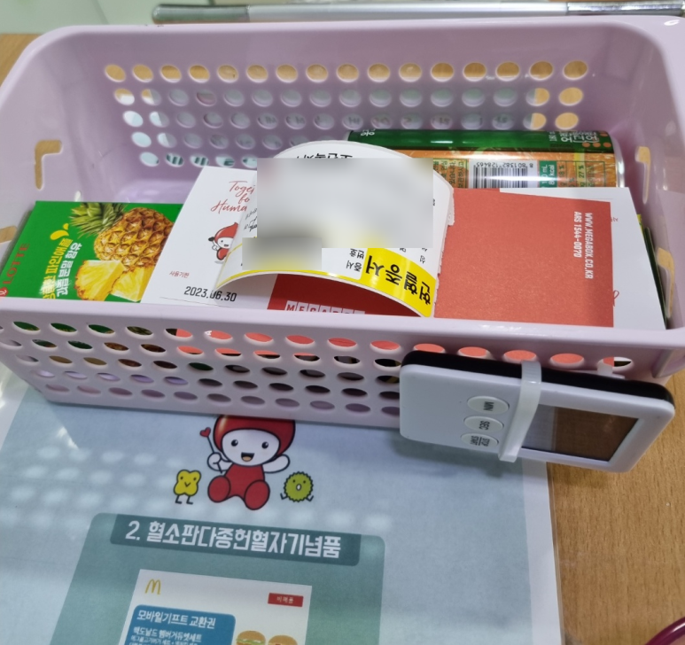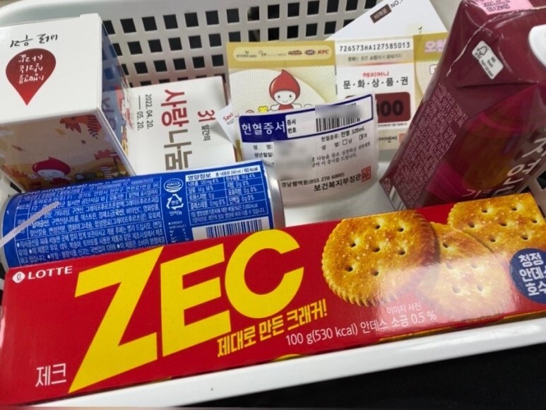 위 대표 선물 외에 헌혈 하기 전 대기시간 또는 헌혈 후 휴식을 취하면서 먹을 수 있는 간식거리도 많이 줍니다. 사실 요즘 과자 값도 ㅎㄷㄷ 한데 이것도 꽤 나가는거 짐작가시죠?