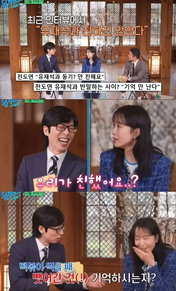 하지만 정작 연락은 끊긴지 십수년 됐다고 아쉬워하다, 2020년 백상예술대상 시상식때 오랜만에 만났는데 이때 유재석이 "도연아!오랜만이다!"라고 인사하자 "저도요." 라고 존댓말로 답해 유재석이 수상소감에서 "도연씨, 우리 말 놨었어요."라고 농담으로 이를 언급하자 전도연 본인이 생각해도 웃겼는지 관객석에서 빵 터진 모습이 잡히기도 했다.
