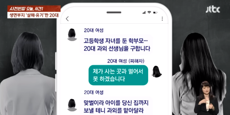 부산에 거주하는 23세 여성 정유정이 알바 중개 앱을 통해서 고등학생 자녀를 둔 학부모인 척 과외를 해줄 학생을 모집하면서 시작되었습니다. 23년 5월 23일 쯤에 한 20대 여성이 과외 요청에 응했다가 거리가 너무 멀어서 거절했는데 계속해서 정유정이 과외를 요청하여 만남을 요구했다고 합니다.