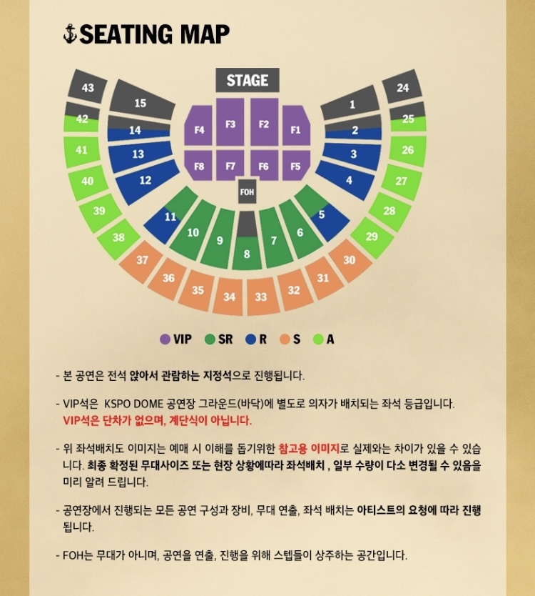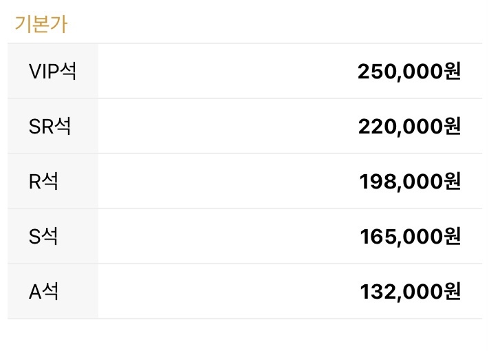 △VIP석(25만원대) △SR석(22만원대) △R석(19만원대) △S석(16만원대) △B석(13만원대)