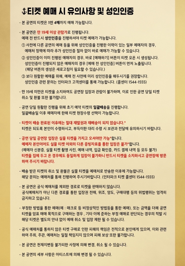 그리고 이번 공연이 19세 이상이다보니 예매전 성인인증 필수 입니다.
