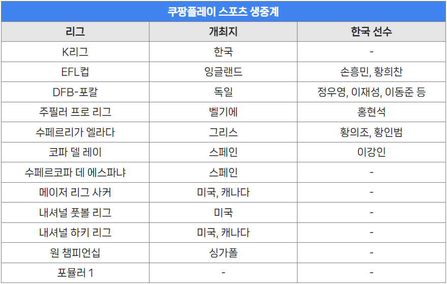 특히 요즘 쿠팡 플레이가 관심받는 이유는 단연코 해외 축구 때문일텐데요. 최근 해외 유명 구단들의 경기와 국가대표 친선경기를 단독 생중계 하기 때문입니다. 최근 트레블을 달성한 EPL의 맨시티와 이강인이 이적한 PSG 방한 경기도 쿠팡플레이에서 단독 중계 하면서 더 많은 사람들이 쿠팡플레이 가입/무료 다시보기 방법을 찾고 있습니다.