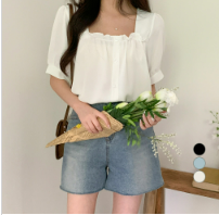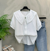 6. 행복여 더블 레이스 카라 퍼프 소매 블라우스