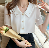 7. 양놀 여성 여름 쉬폰 V넥 반팔 블라우스 셔츠