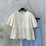 7. 양놀 여성 여름 쉬폰 V넥 반팔 블라우스 셔츠