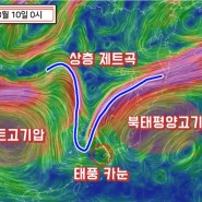 하지만 태풍 카눈 경로는 아직 변경될 가능성이 있습니다. 태풍 동편에 열대저압부가 발달하고 있는데, 이 열대저압부에서 카눈을 서쪽으로 이동하게 생성해 주는 '지향류'가 만들어지고 있기 때문인데요. 이 열대저압부가 어디에서 얼마나 커지는지에 따라 카눈 예상 경로가 바뀔 수 있습니다.