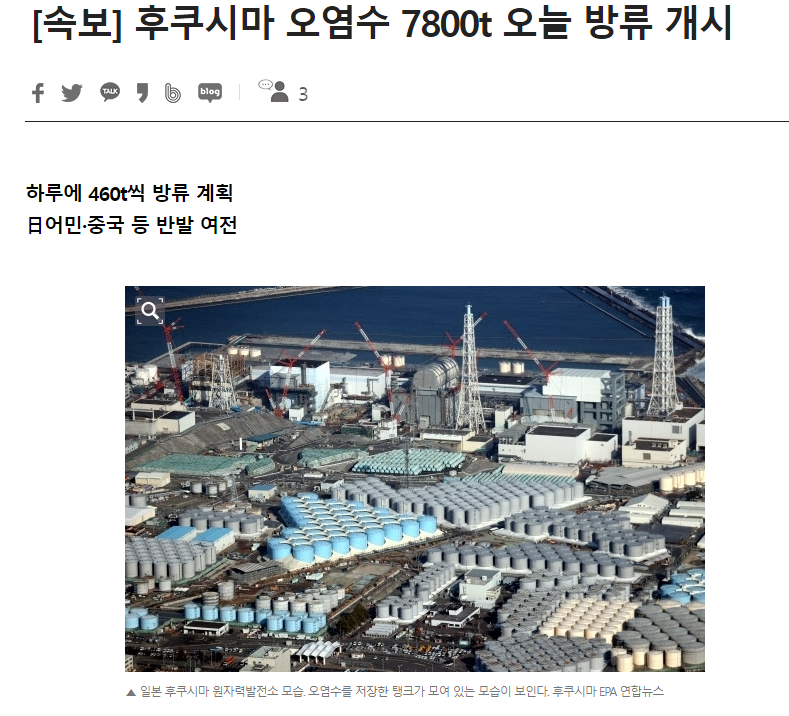 일본 정부와 도쿄전력이 예고한대로 8월 24일 오후 1시 경 후쿠시마 제1원자력발전소 오염수의 해양 방류가 시작되었습니다. 그 동안 후쿠시마 오염수 방류 찬반 그리고 그 시기에 대해 말이 많았지만 결국 정부들의 움직임을 막을 수는 없었습니다.