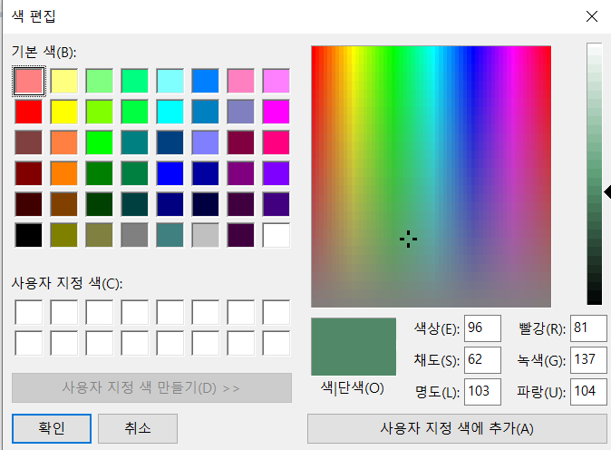 다시 그림판 상단에서 색 편집을 클릭하면 아래와 같은 화면이 뜨게 됩니다.