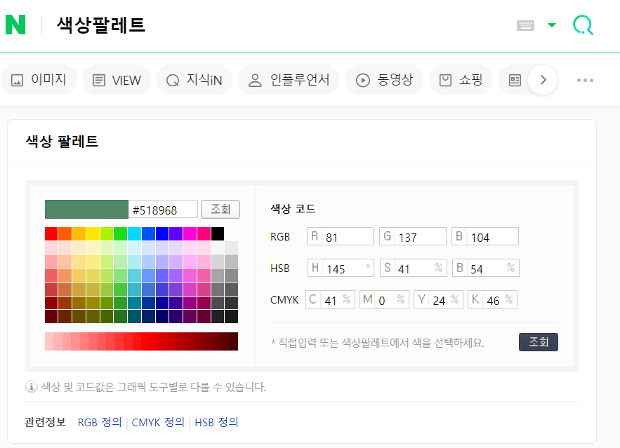 위 RGB 코드를 잘 기억해 놓으시고 네이버 색상팔레트로 이동하시면 됩니다.