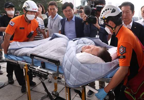 민주당은 18일 “오늘 오전 6시55분쯤 이재명 대표의 건강 상태가 악화해 119 구급대와 인근에서 대기 중이던 의료진을 호출했다”며 “이송 당시 이 대표의 신체징후는 전날과 변화가 없었고, 탈수 등의 증상을 보였으며, 정신이 혼미한 상황이었다”고 말했습니다.