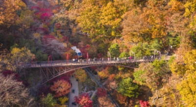 단풍 숲과 생태 공간: 화담숲은 황금빛으로 물든 다양한 종류의 나무들이 자연스럽게 어우러진 단풍 숲으로 유명합니다. 노고봉의 계곡과 능선을 따라 자리잡은 나무들은 가을의 아름다움을 뽐내며 단풍구경을 즐길 수 있게 합니다.