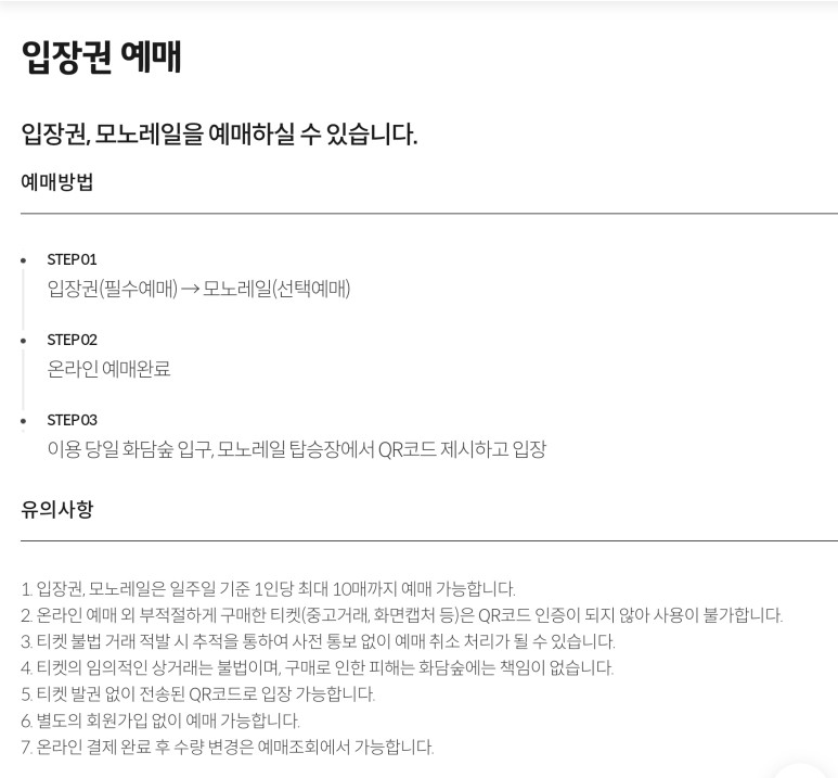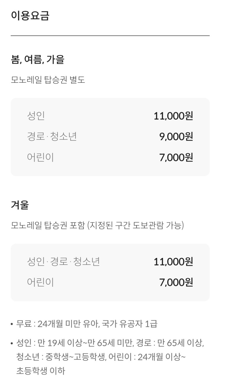 입장료: 입장료는 성인 9,000원, 어르신 및 청소년 7,000원, 어린이 5,000원입니다. 예약시 반드시 확인하고 가격 변동 여부를 확인하세요.