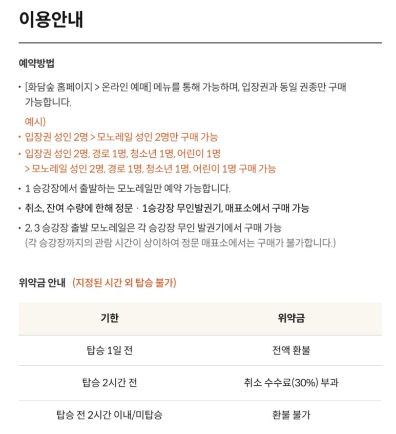 모노레일 탑승권은 입장료와 별도로 구매해야 합니다. 구간에 따라 가격이 다르며, 현장에서 구매 가능합니다.
