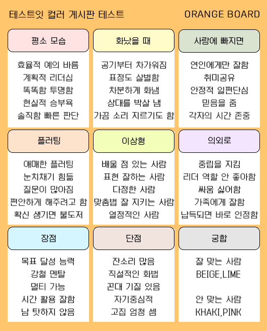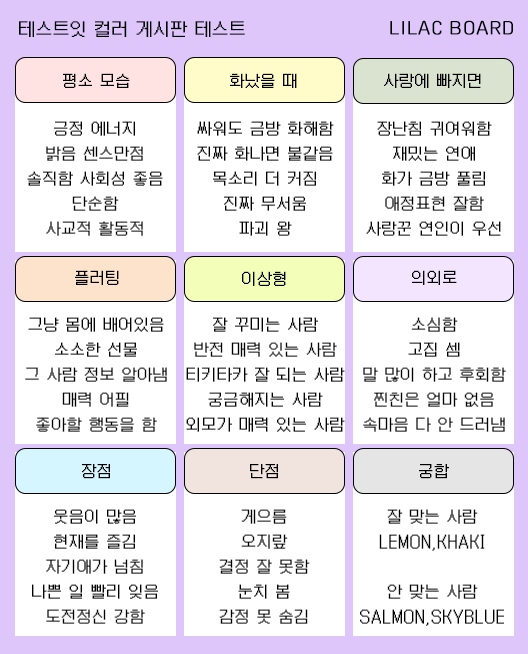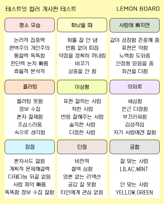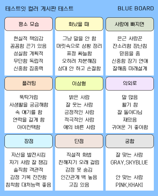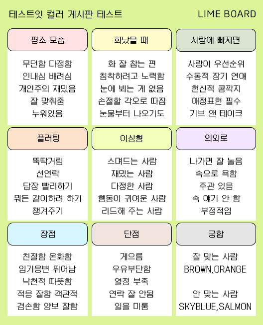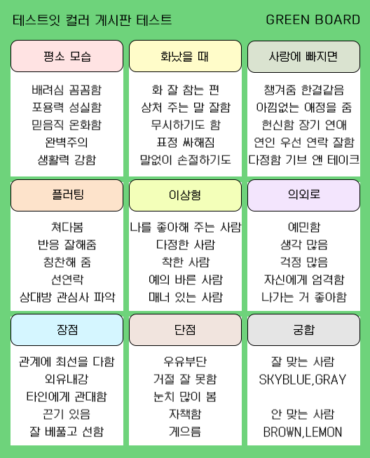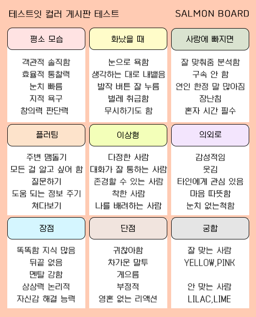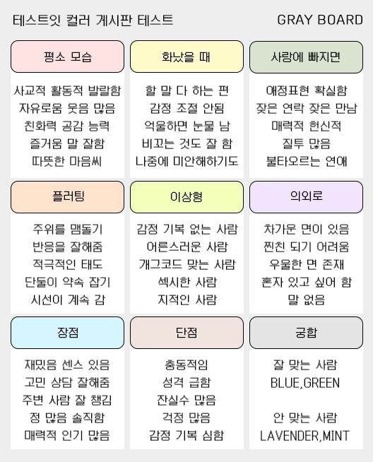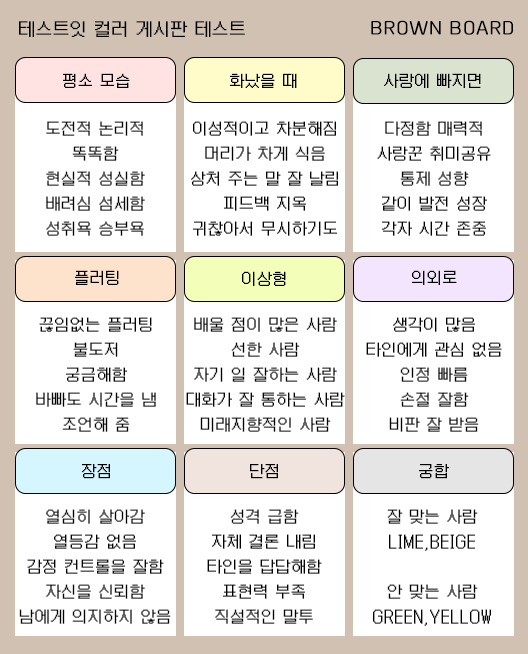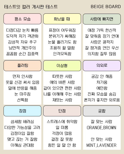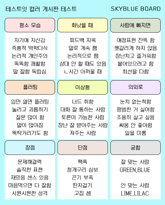 컬러 게시판 테스트 mbti 유형