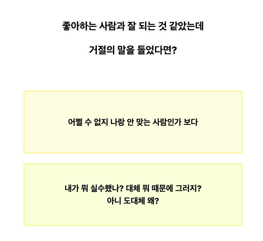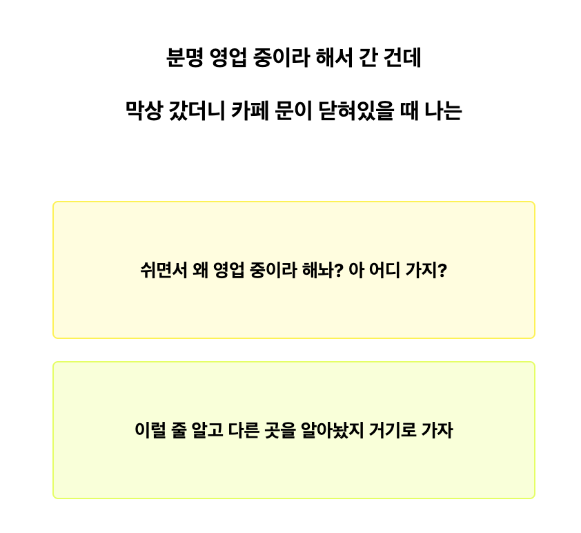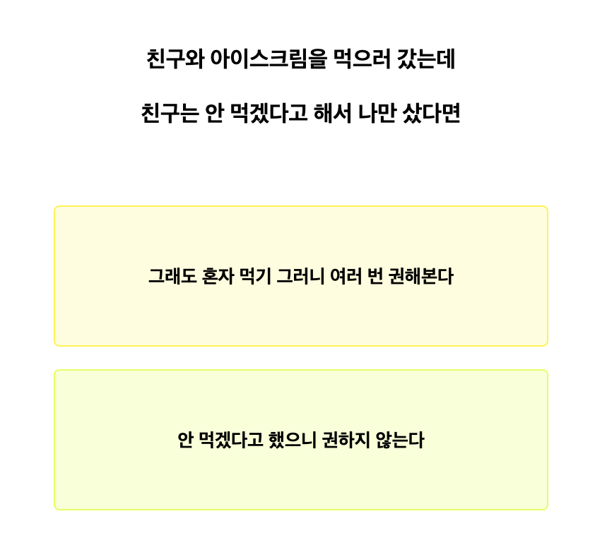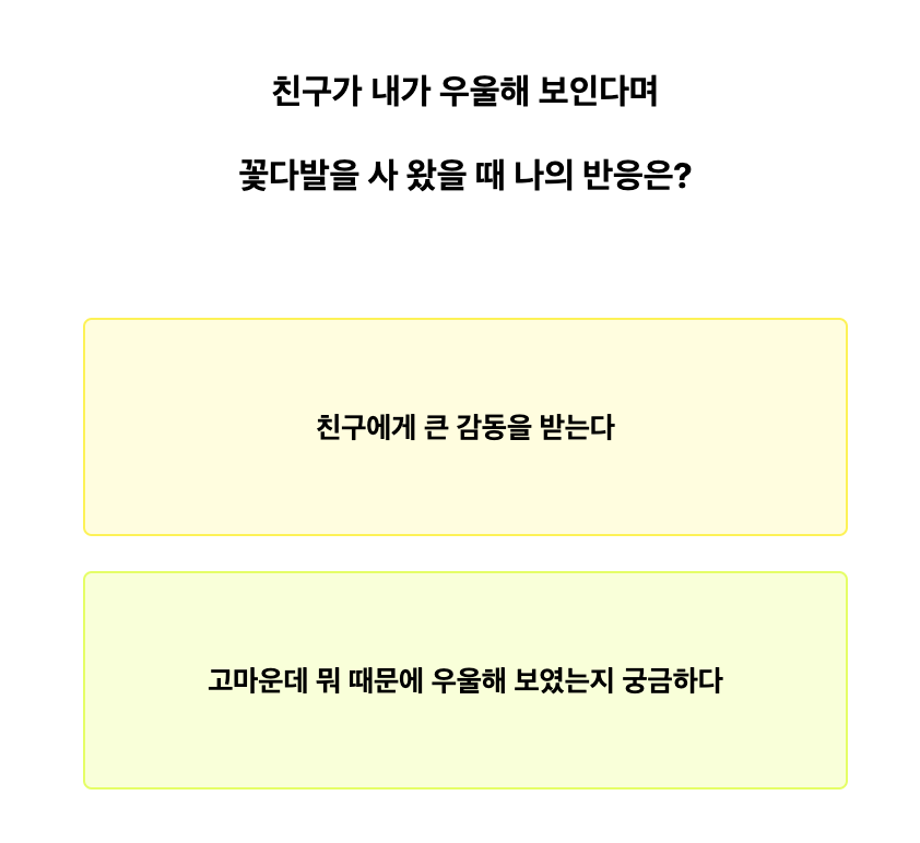 하지만 대부분 이런 검사가 그렇듯이 너무 고민하지마시고 이런 상황에서 나라면 이렇게 할 것 같아 라는 생각이 드는 선택을 잘 고르시면 되겠습니다!