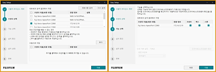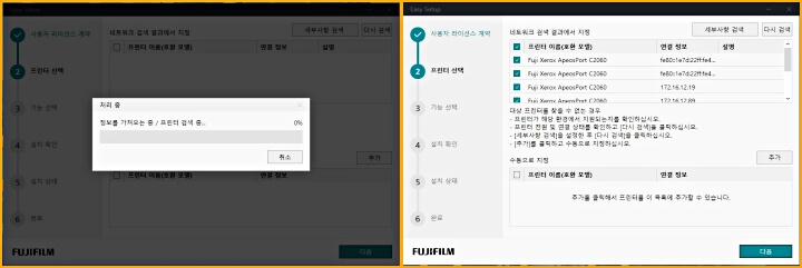 다음과 같이 같은 네트워크에 연결이 되어 있는 제록스 프린터 또는 복합기, 복사기들이 나타납니다.