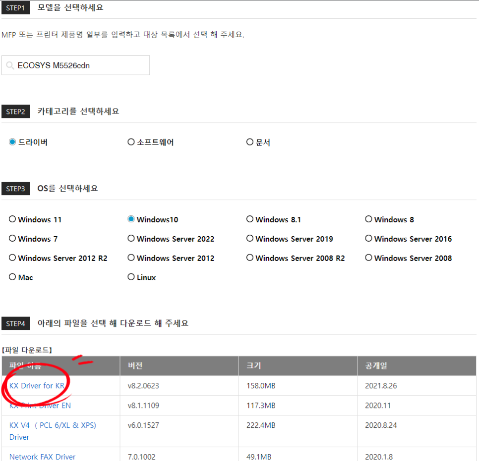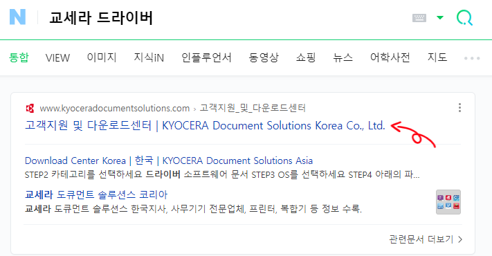 구글이나 네이버에 '교세라 드라이버' 검색하시고 맨위에 웹사이트로 들어가줍니다