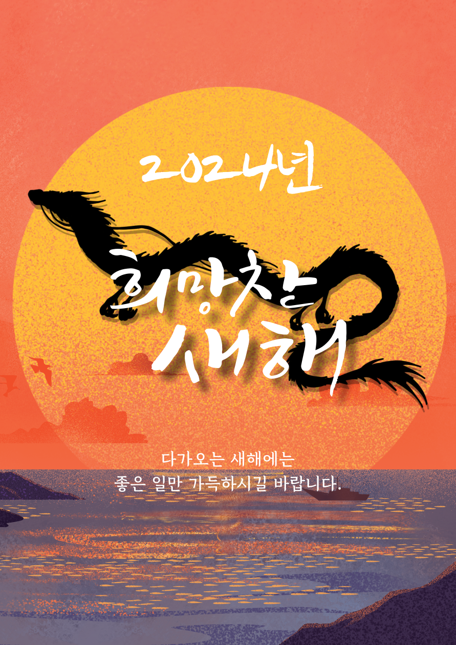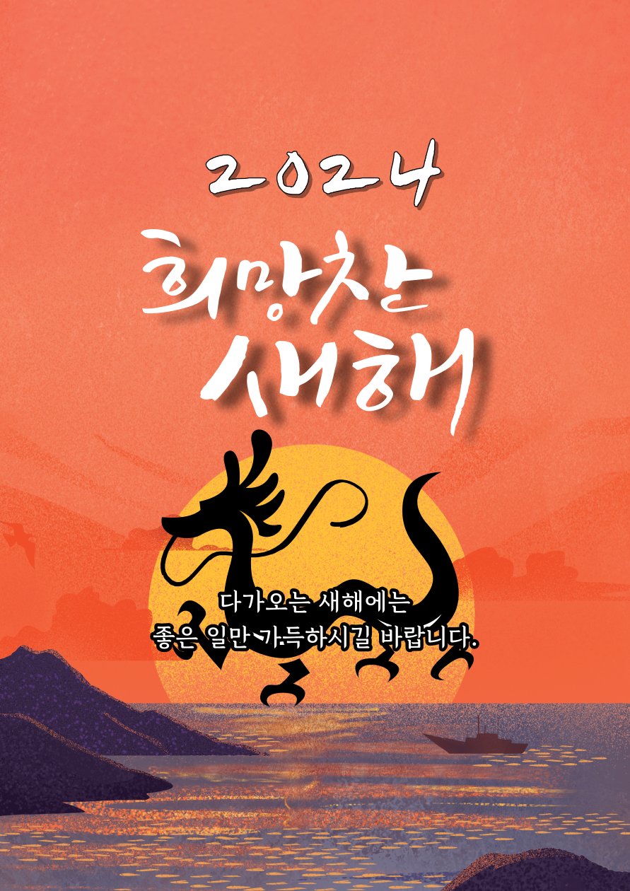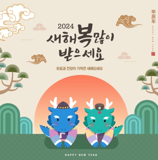 갑진년 새해에는 기쁨은 더하고, 사랑은 곱하고, 행복은 나눌 수 있는 뜻깊은 2024년 되기를 기원하며 소망하는 모든 일이 복스럽게 잘 이루어지는 복 된 한 해 보내시길 바랍니다.