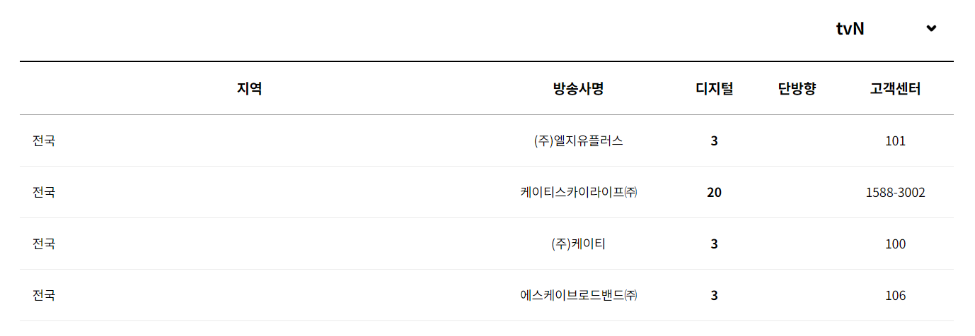 tvN 채널번호