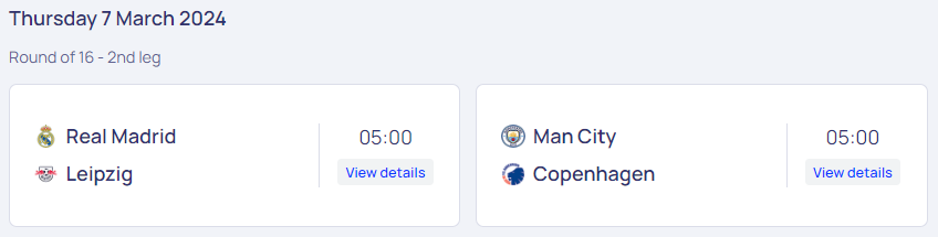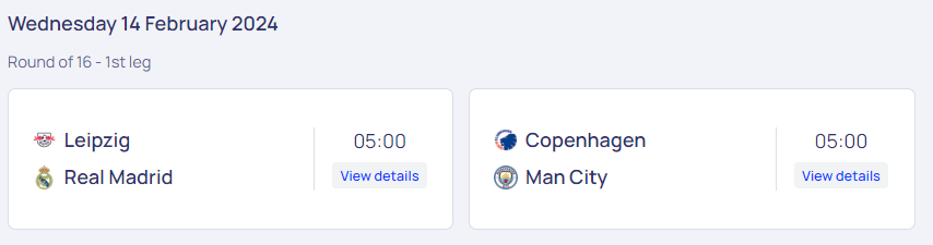 2023/24 UEFA 챔피언스리그 16강 첫 경기는 독일의 라이프치이와 스페인의 레알마드리드, 그리고 덴마크의 코펜하겐과 잉글랜의 맨시티와의 대결입니다. 모든 16강 경기는 한국 시각으로 새벽 5시에 펼쳐지네요. 예전에는 새벽 3시 반 경기가 대부분이었는데 5시면 충분히 괜찮다는 생각이 듭니다. 강력한 우승후보 레알 마드리드와 맨체스터 시티가 토너먼트에서도 그 위용을 보여줄지 기대가 됩니다. 라이프치히와 코펜하겐이 이변을 일으켜도 재밌을 것 같습니다. 기대가 되는 챔스 16강 첫 경기입니다.