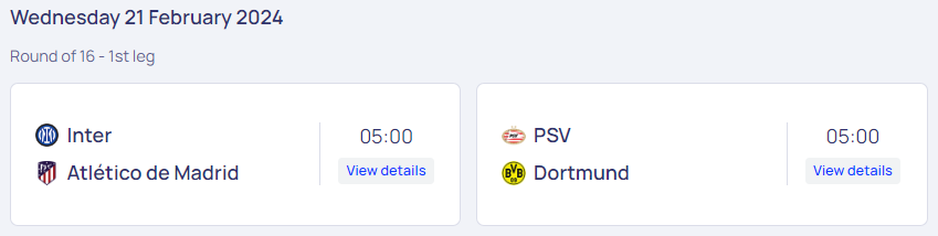 2월 21일에는 이탈리아의 인터밀란과 스페인의 아틀레티코 마드리드, 그리고 네덜란드의 아이트호벤과 독일의 도르트문트가 만납니다. 개인적으로 인터밀란과 아틀레티코 마드리드의 경기가 이번 16강 최고의 빅매치가 아닌가 싶습니다. 어느 팀이 올라갈지 예측이 어렵네요.