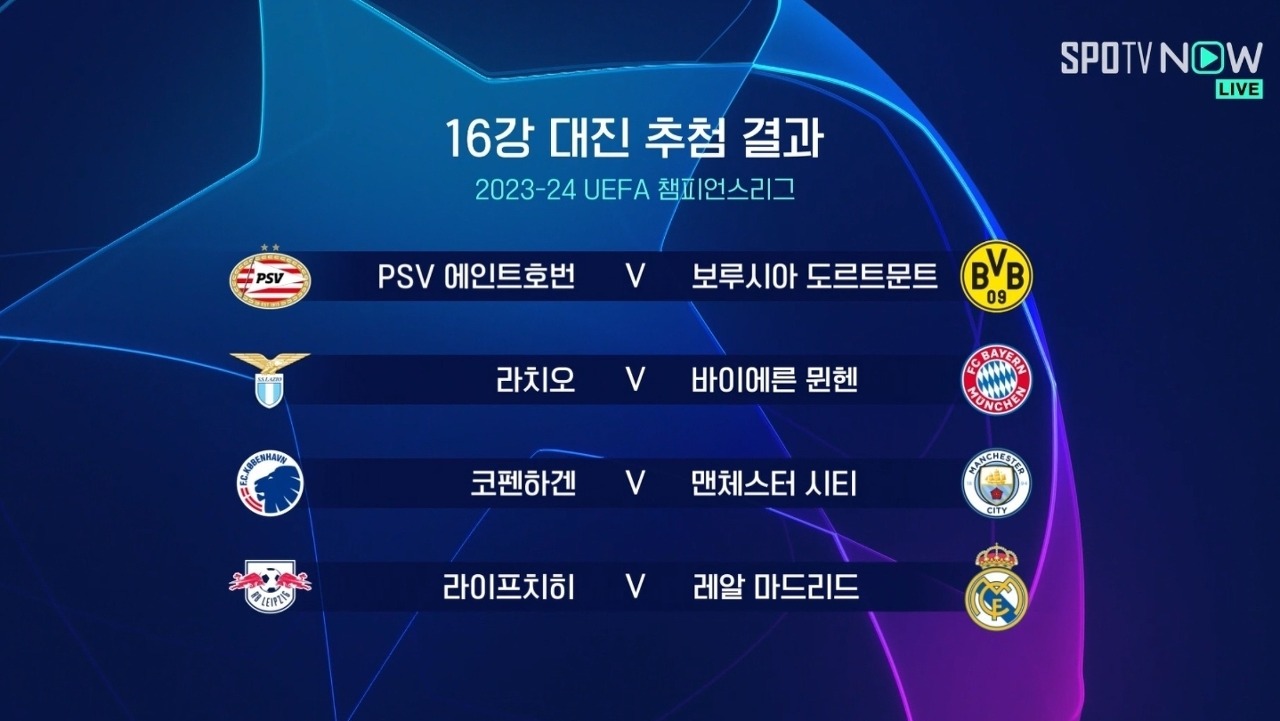 2023/24 챔스 16강 대진표