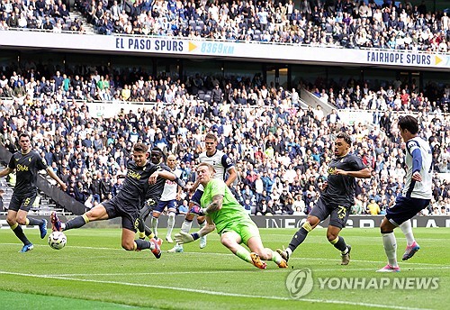손흥민의 첫 번째 골은 전반 25분에 나왔다. 에버턴의 골키퍼 조던 픽퍼드를 강하게 압박하며 실수를 유발한 손흥민은 빈 골문에 가볍게 공을 밀어 넣으며 시즌 첫 득점을 기록했다. 이 골로 토트넘은 에버턴을 상대로 더욱 확실한 승기를 잡을 수 있었다.