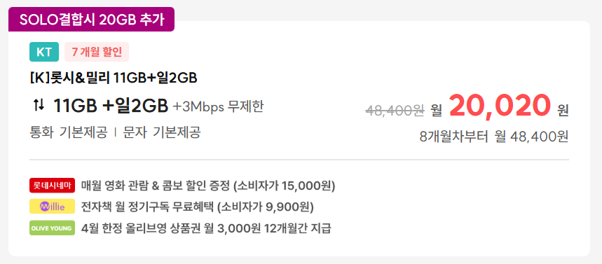 - 이벤트 상품, 유심비 무료 등 부가조건 선택 가능