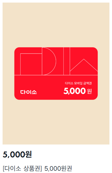 - 사용처: 전국 다이소 매장 또는 다이소몰 온라인 쇼핑몰