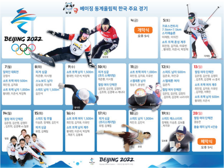 베이징 동계 올림픽 한국 경기 일정