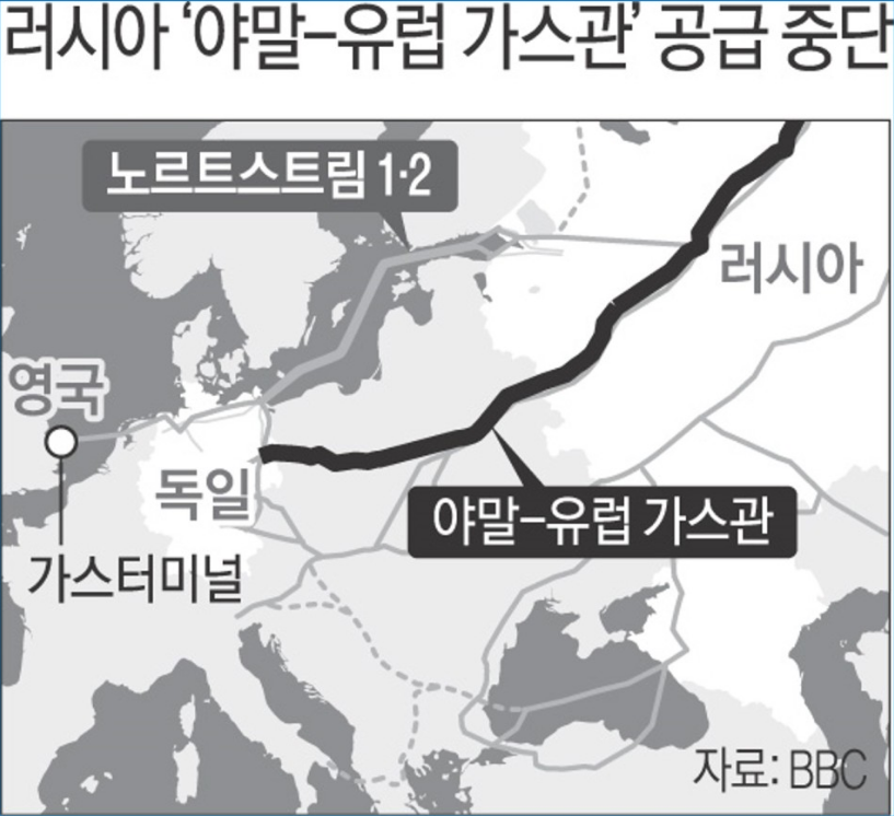 안그래도 최근 ESG 이슈로 인해 치솟는 천연가스 가격이 많은 문제는 일으키는데 러시아는 이에 한술 더떠 유럽으로 넘어가는 주 가스 공급라인에 가스 공급을 중단해버리기까지 했습니다. 한파로 인해 힘들었던 유럽이 가스 부족으로 인해 이번 겨울 아주 혹독한 시간을 보냈다고 합니다. EU를 괴롭혀 미국이 눈치를 보게 만들 작정인 것이죠.