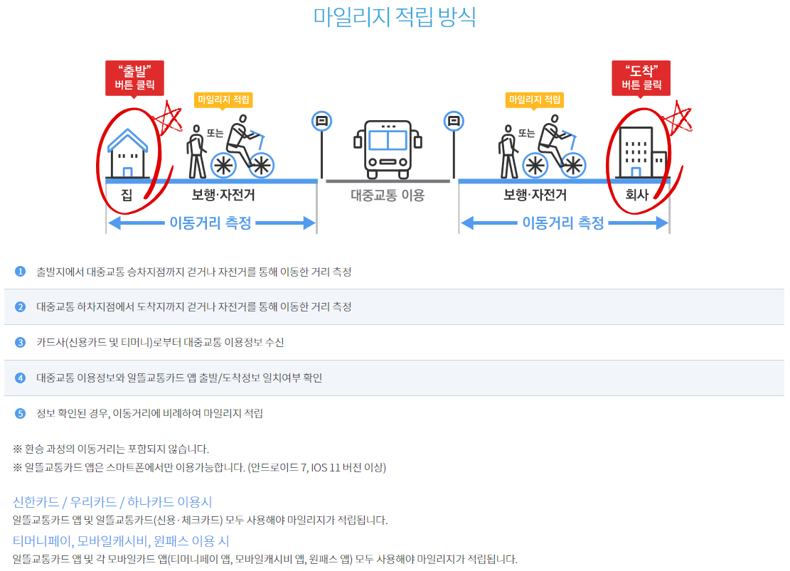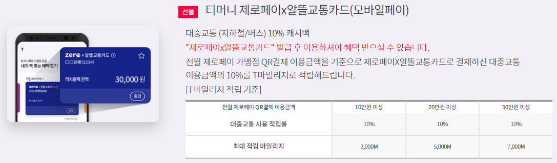 알뜰교통카드는 대중교통을 이용하기 위해 걷거나 자전거로 이동한 거리만큼 추가 마일리지를 적립해 지급하고 아울러 카드사의 추가할인 혜택 (보통 10%)을 포함해 대중 교통비를 최대 30%까지 절감할 수 있는 교통카드 입니다. 보통 카드사에서 많이 할인을 준다고 하면 20%를 말하는데 30%까지 할인을 받을 수 있다는 점이 이 카드의 가장 큰 매력입니다.